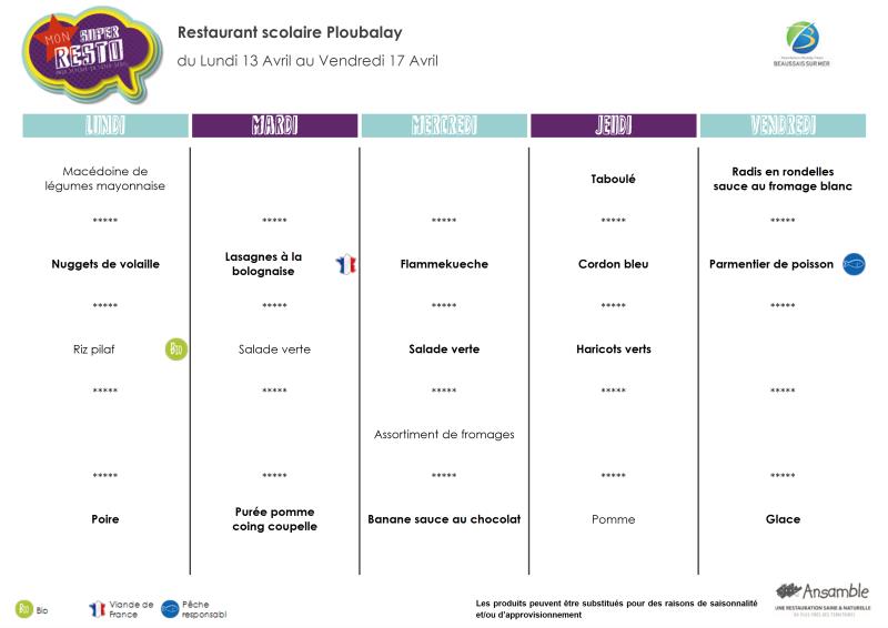 Menu - Sem 16 du 13 au 17 avril