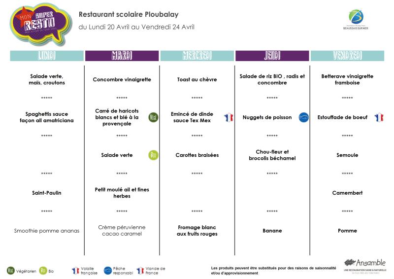 Menu - Sem 17 du 20 au 24 avril