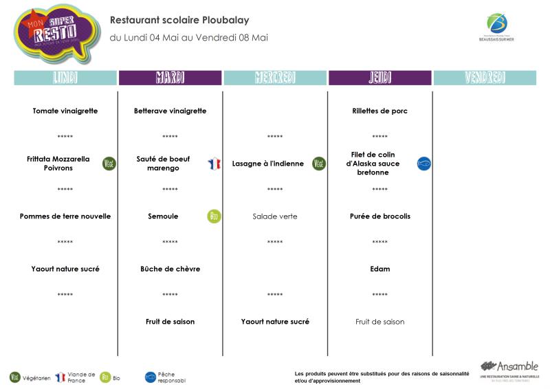 Menu - Sem 19 du 4 au 7 mai