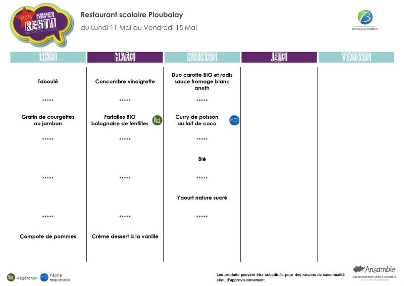 Menu - Sem 20 du 11 au 15 mai