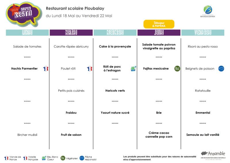 Menu - Sem 21 du 18 au 22 mai