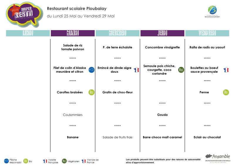 Menu - Sem 22 du 25 au 29 mai