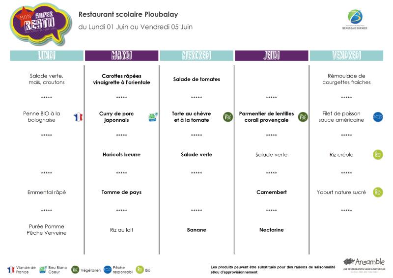 Menu - Sem 23 du 1 au 5 juin