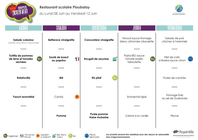 Menu - Sem 24 du 8 au 12 juin