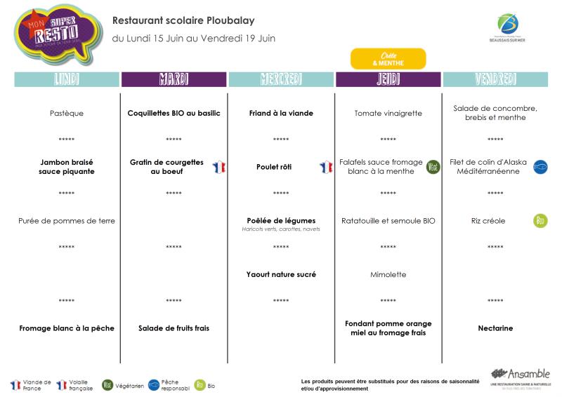 Menu - Sem 25 du 15 au 19 juin