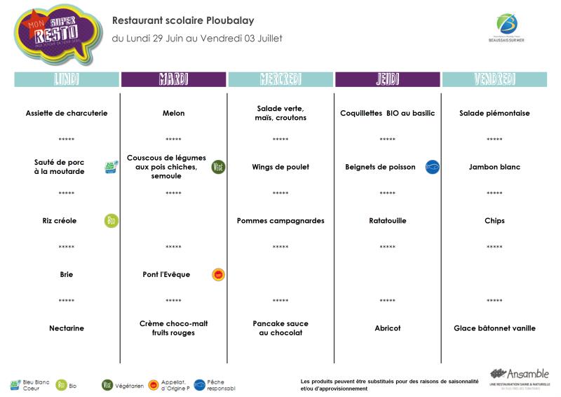 Menu - Sem 27 du 29 juin au 3 juillet