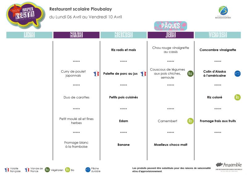 Menu semaine 15 - 6 au 10 avril